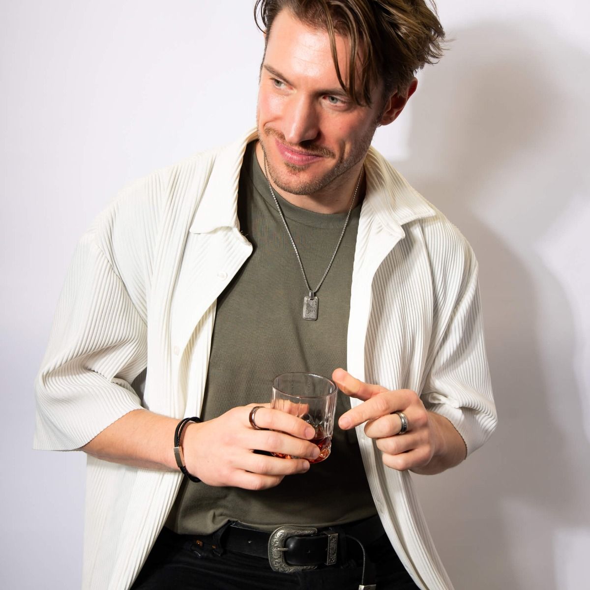 მასალა - უჟანგავი ფოლადი, ნატურალური ტყავი.