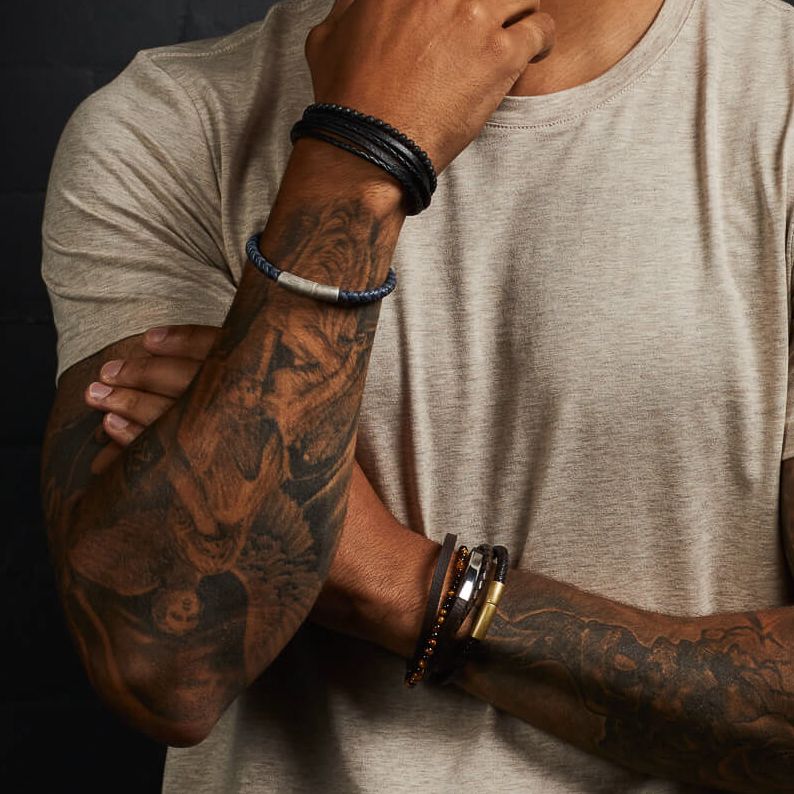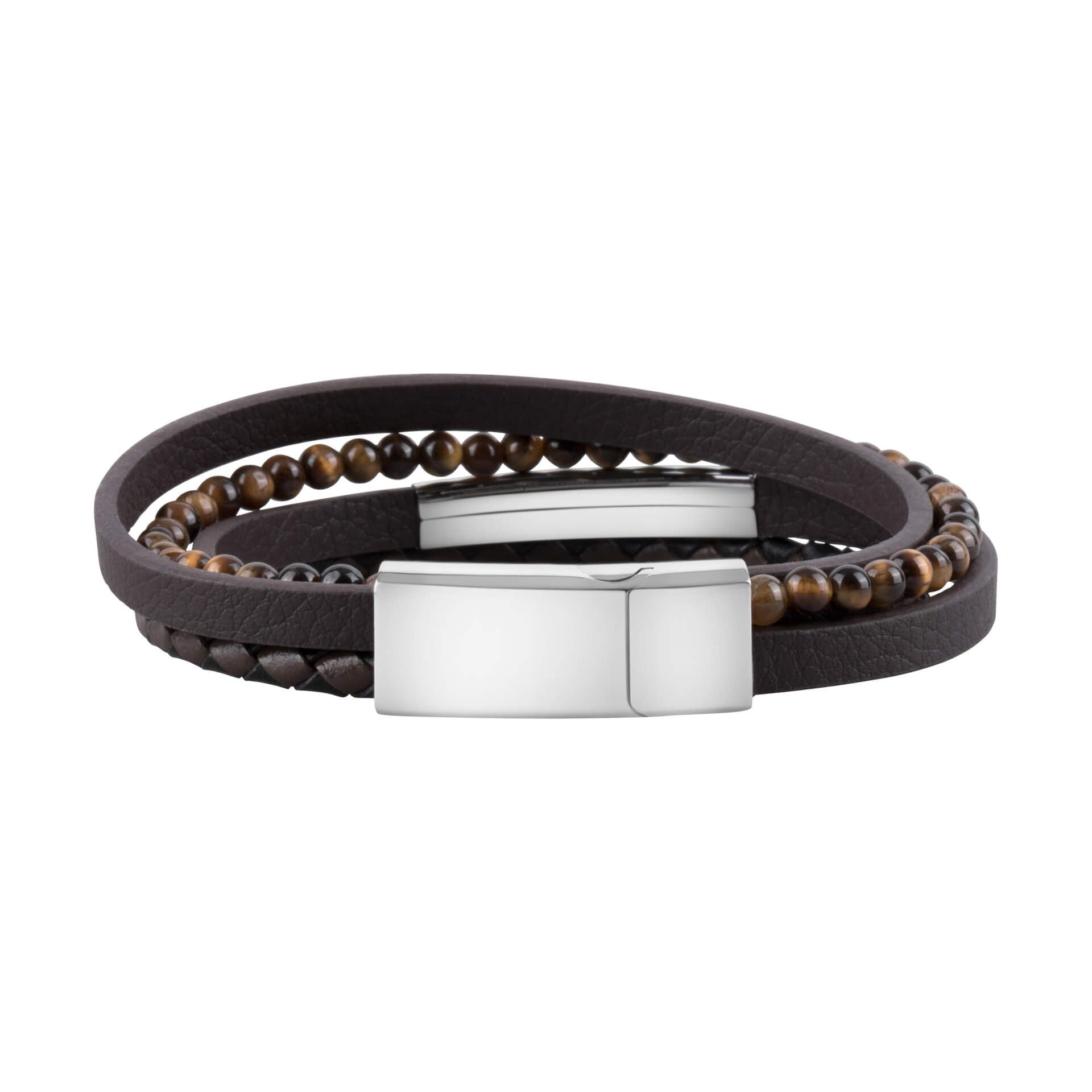 მასალა - უჟანგავი ფოლადი, ნატურალური ტყავი - ვეფხვის თვალის მძივით გაფორმებული