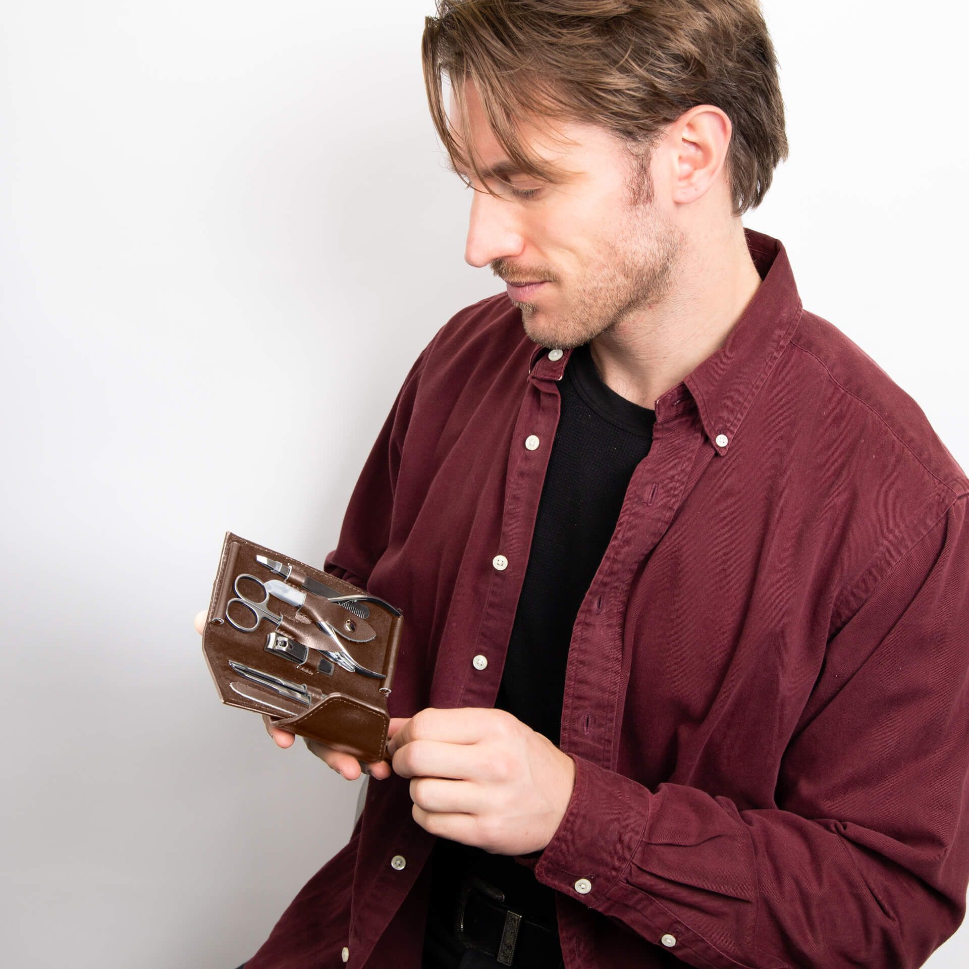 მასალა - ნატურალური ტყავი, უჟანგავი ფოლადი