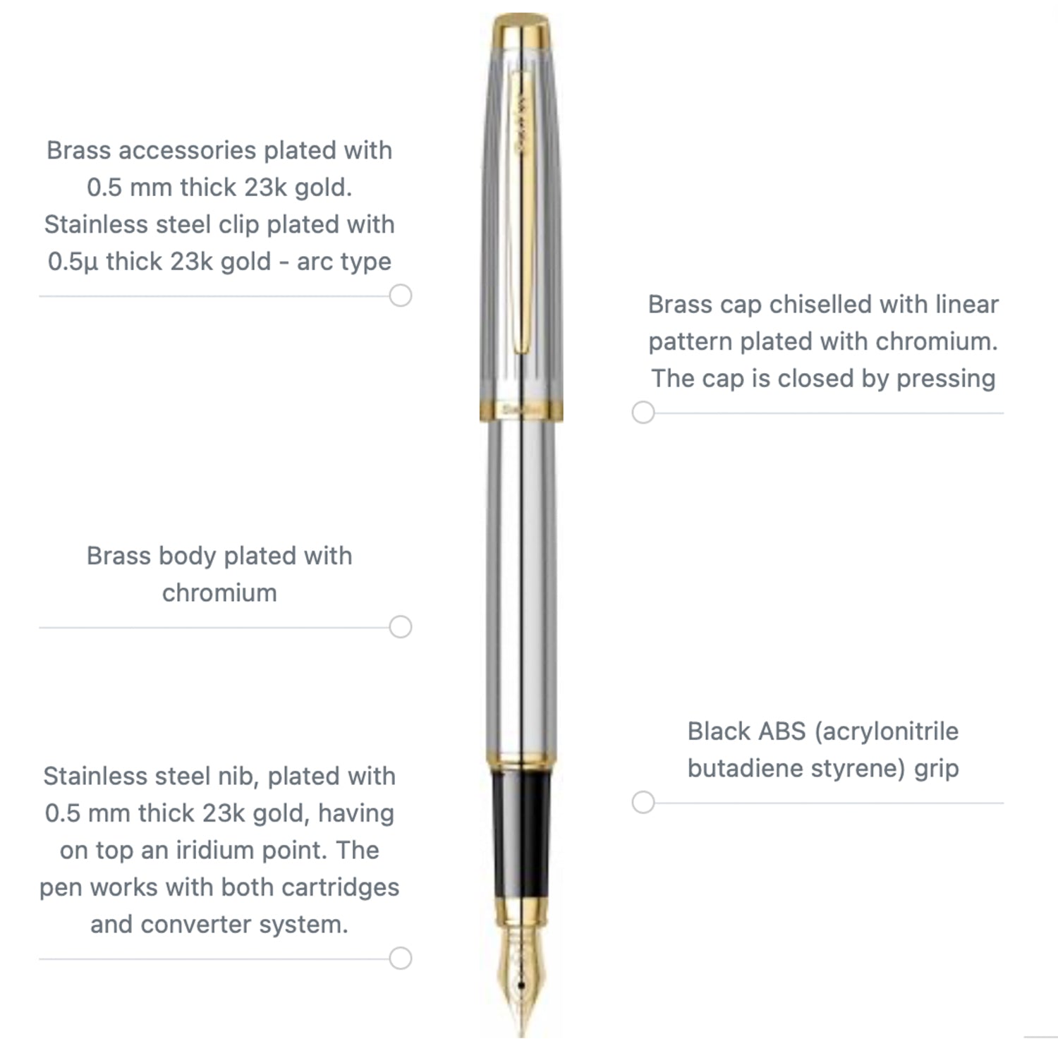 | წვერის მასალა | ფოლადი, ოქროს საფარით |