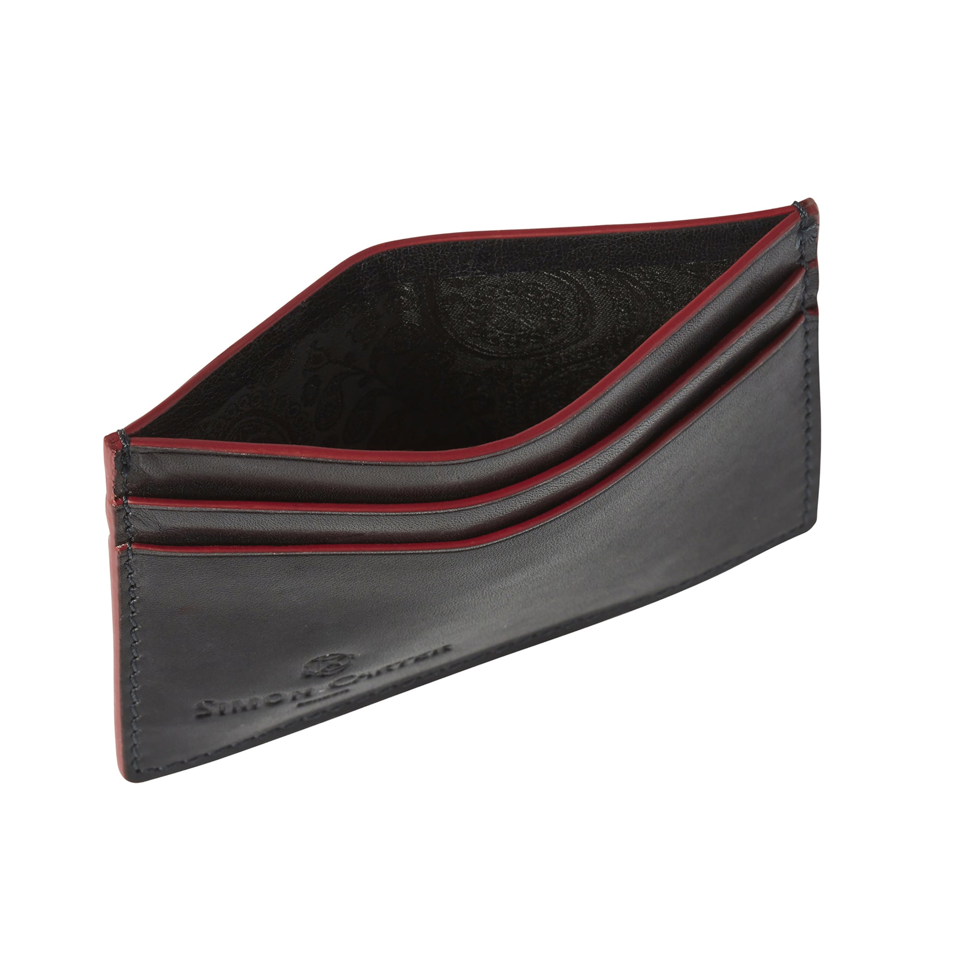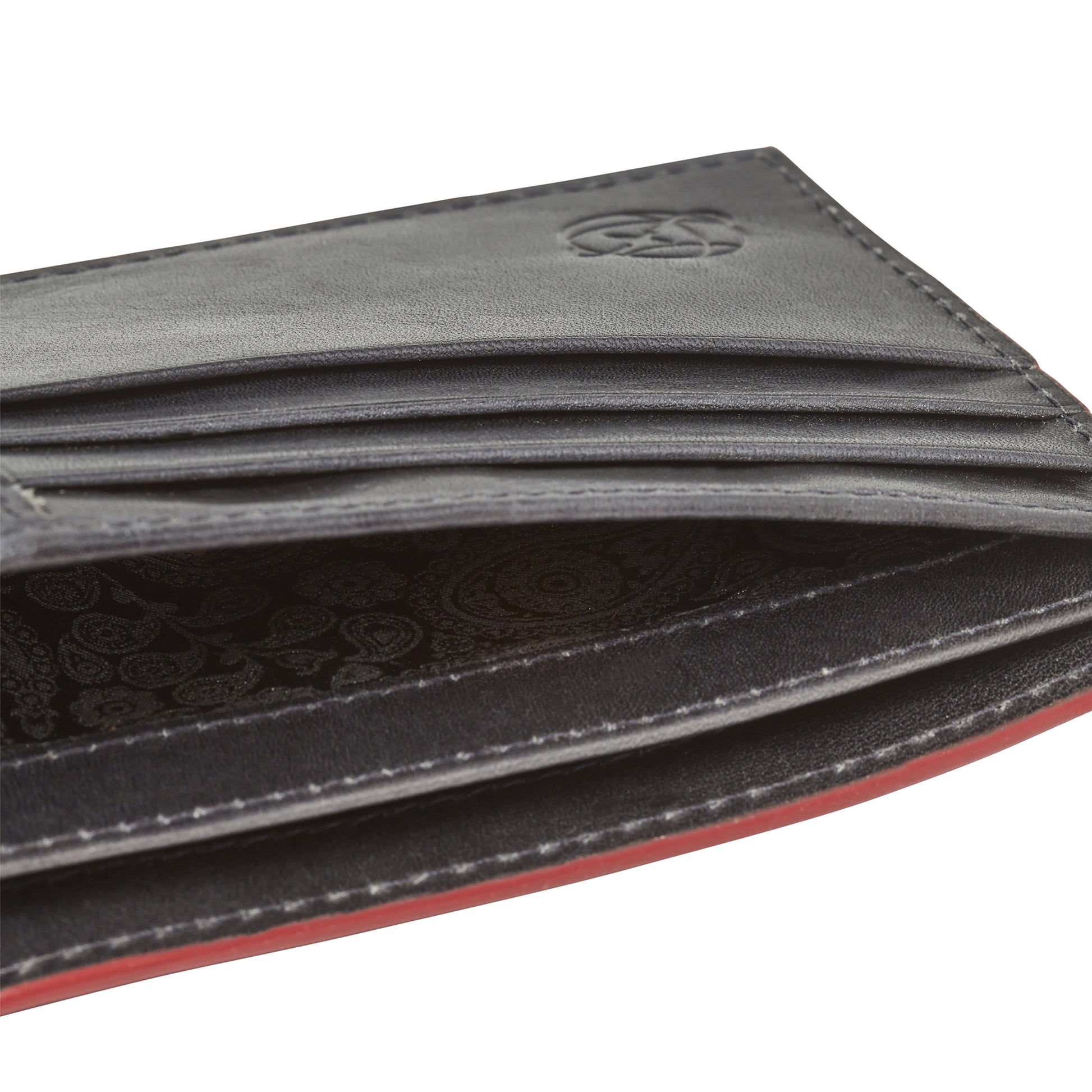 Red Edge Navy - საბარათე დამზადებულია ნატურალური ტყავისგან და იდეალურია ბარათებისთვის. მასში ბარათების ჩასადებად სულ ხუთი განყოფილებაა. ძირითადი ნაწილი მდიდარი, ღრმა ლურჯი ფერისაა, ხოლო ტყავის ნაპირები გამორჩეული წითელი ფერითაა დამუშავებული, რაც ელეგანტურ კონტრასტს ქმნის. ბარათების დამჭერი გაფორმებულია ჩვენი ბრენდის გამძლე ქსოვილის — პეისლის (Paisley) ორნამენტით და მთლიანად გამორჩეულია მყარად დამუშავებული ნაკერებით, რაც ხანგრძლივ გამოყენებას უზრუნველყოფს.
